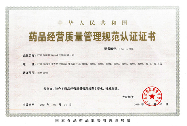 藥品經營質量管理規范認證證書(GSP認證證書)